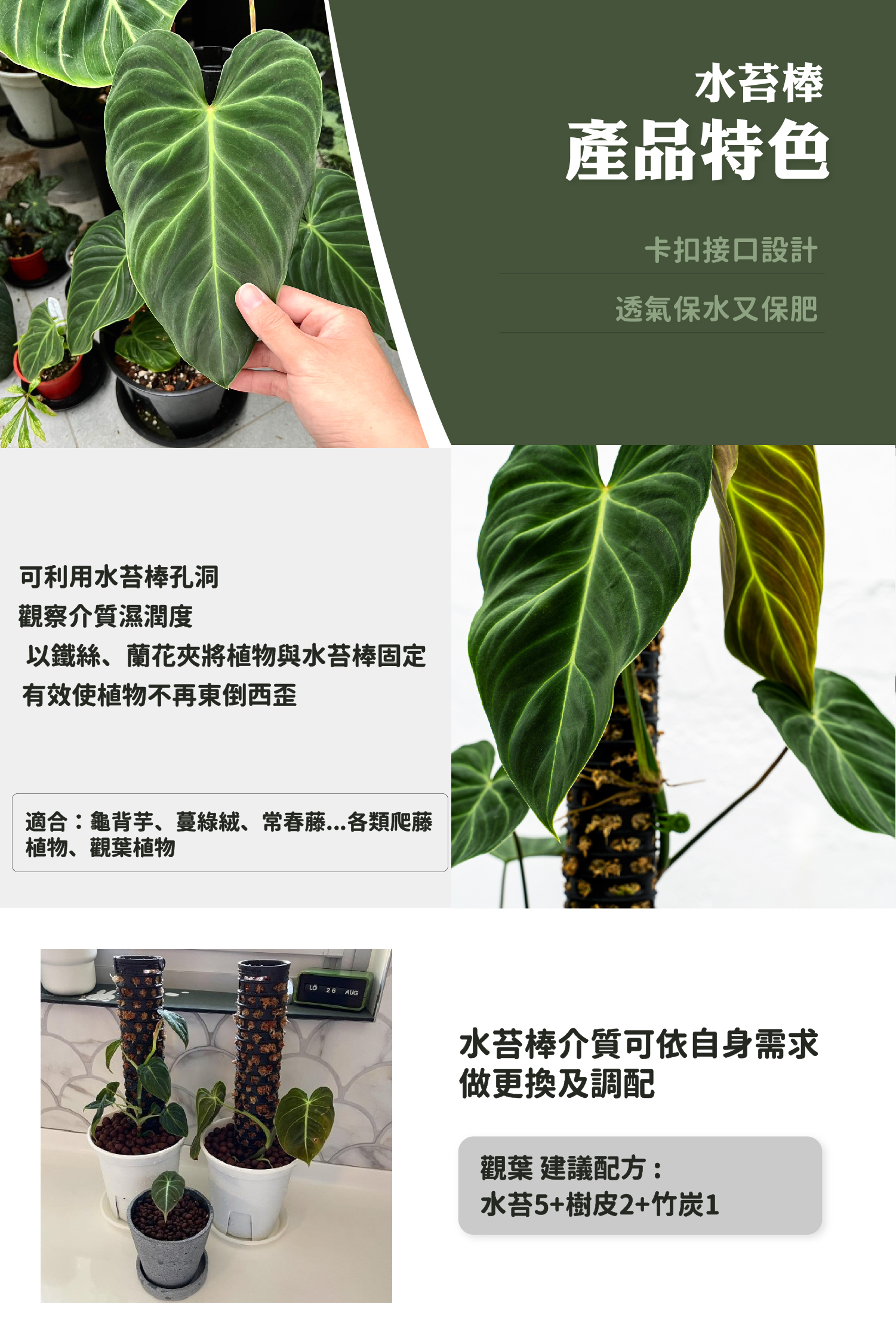 提供觀葉最好的攀爬棒、水苔棒